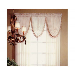These simple but elegant sheer panels are great to add just a hint of color and contrast to your existing window treatments. This window covering collection has fring on the bottom edges of the waterfall valance and two ends of the scarf valance.