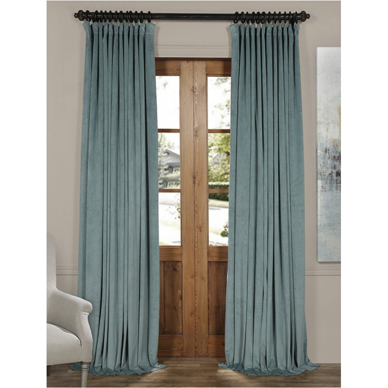 Signature Aqua Mist Doublewide Blackout Velvet Curtain VPCH-160402-GRBO from Half Price Drapes (HPD, Exclusive Fabrics & Furnishings LLC). Browse HPD site and see the wide array of Silk, Linen, Taffeta Silk and Velvet, Cotton Satin, Exclusive Italian Cotton Silk and Sheer curtains & drapes in breathtaking colors and embroidery.